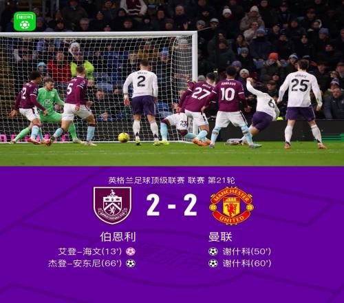 剑南春曼联客场22伯恩利遭三连平,谢什科双响,海文乌龙 -